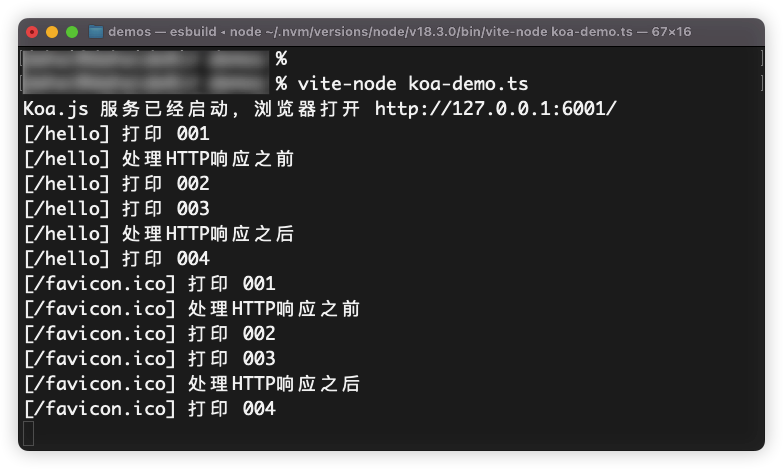 这段代码执行后,可以访问 http://127.0.0.1:6001/hello 连接,得到控制台这样的打印顺序: