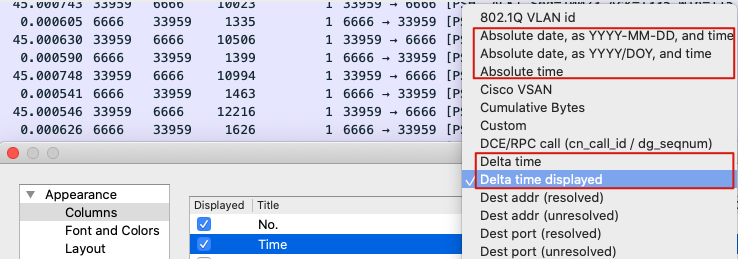之前我们看到很多个整齐的45秒,是因为那个窗口里显示的报文,都是过滤过的心跳报文,跟这里显示的报文不同,所以显示的间隔时间也不同。Wireshark里的Time一列有多种配置可选,所以你一方面要理解这里面各种Time的区别,一方面自己做分析的时候,也可以根据实际需要,灵活选择Time类型。