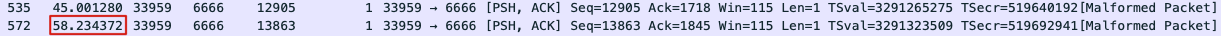 可见,这些心跳探测包也是很明显遵循了45秒间隔的规律。不过,等一下,为什么572号心跳探测包跟它的上一次心跳探测,间隔的时间是58秒,而不是45秒呢?
