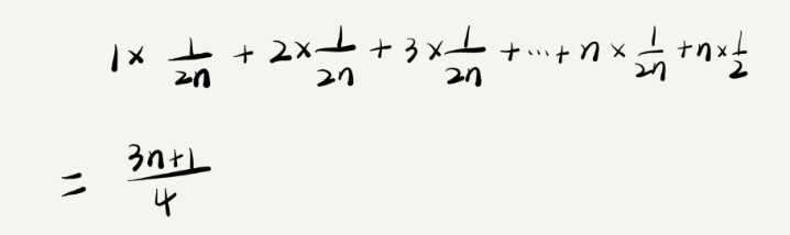 这个结论虽然是正确的,但是计算过程稍微有点儿问题。究竟是什么问题呢?我们刚讲的这n+1种情况,出现的概率并不是一样的。我带你具体分析一下。(这里要稍微用到一点儿概率论的知识,不过非常简单,你不用担心。)