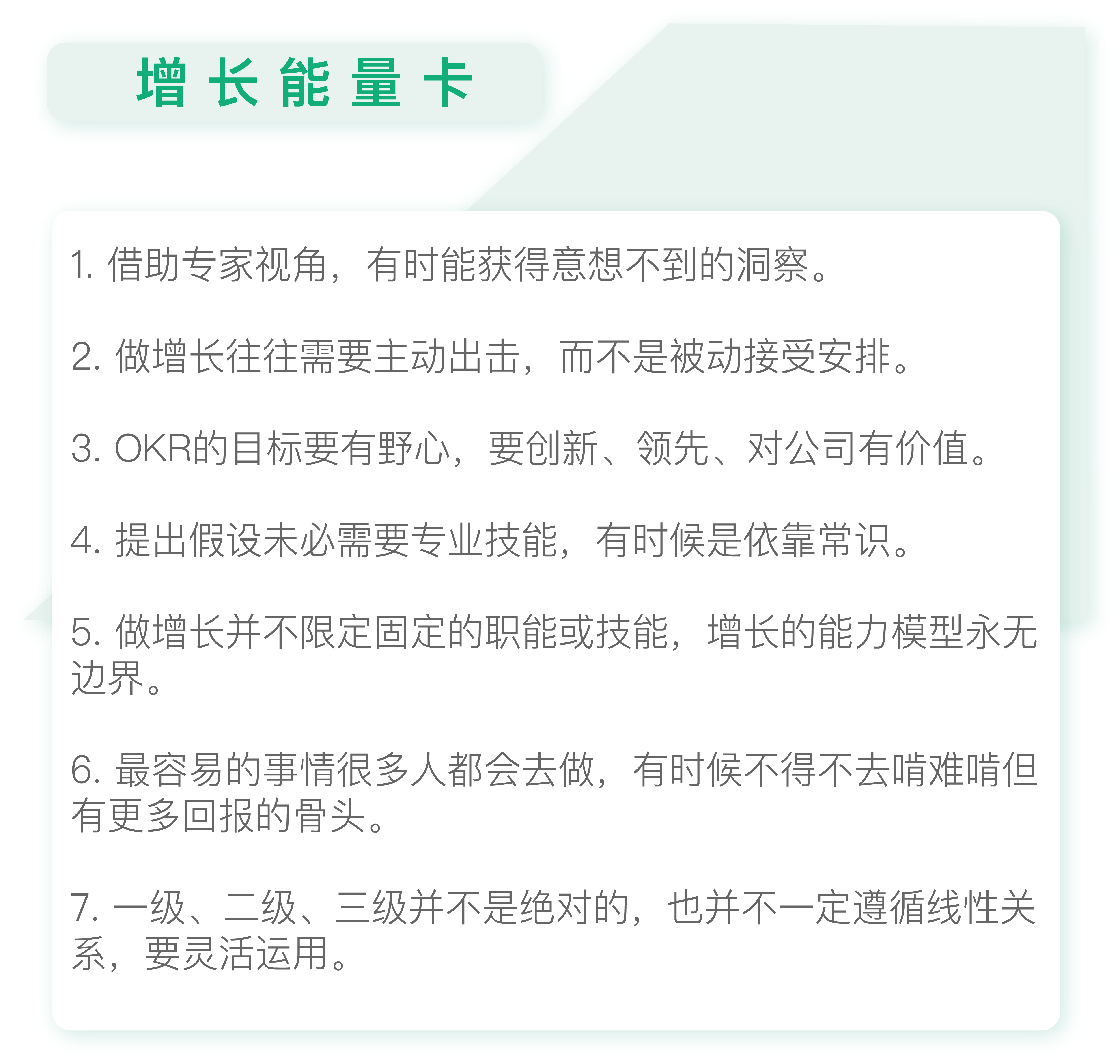 关于OKR制度,当时的老板曾经提出过非常明确的要求:**一是要足够创新;二是要行业领先;三是对公司有价值。**这些要求令我受益匪浅。所以我们定目标,一定不会定容易实现的目标,而是要尽量定有挑战性的。