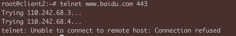 在1上,直接telnet www.baidu.com 443,可以成功。