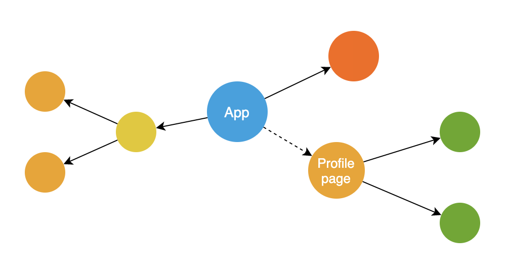 比如当用户打开 /users/profile 这个页面时,才会真正加载对应组件的代码。如下图所示,就展示了这样一个结构,其中 Profile Page 就是需要动态加载的组件。