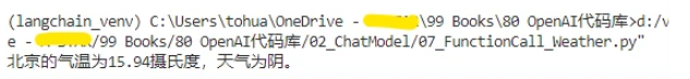- 接着检查模型返回的响应中是否包含function_call,如果有,则提取出函数名和参数,调用对应的函数(这里只有get_weather)。