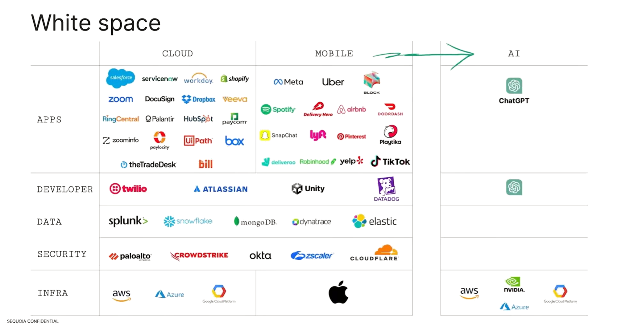 - 第三阶段则聚焦于那些能够通过AI技术增加收入的公司。这一阶段的受益企业包括众多软件和IT服务公司,如Cloudflare、Autodesk、MongoDB等公司。