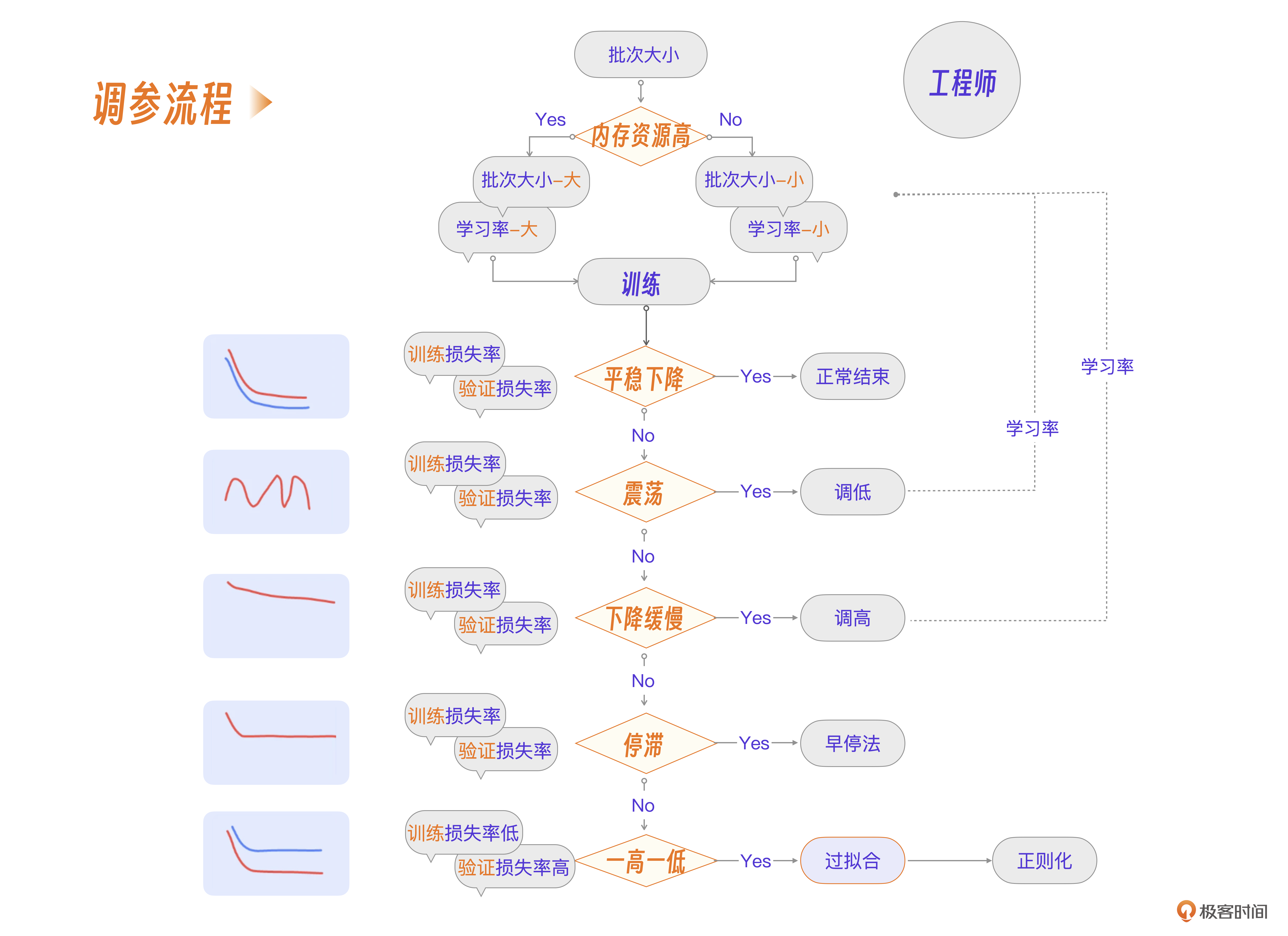不必担心技术难度引起学习困难,我还是会站在应用开发的角度来分析和总结,比如下面就是一张调参流程的图片,很清晰,你可以先猜猜这个项目里具体发生了什么。