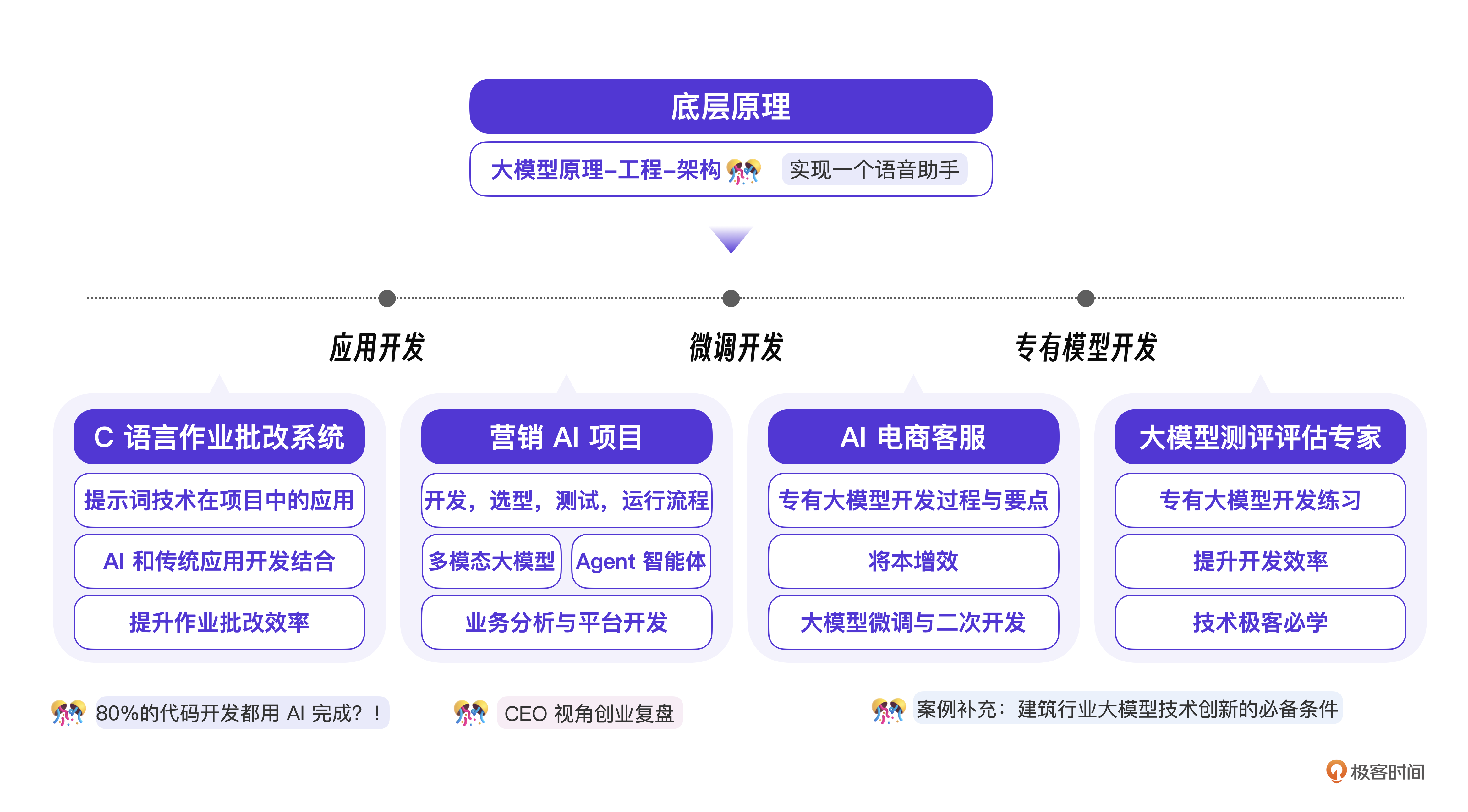 对于工程师或超级个体来说,这门课可以帮助你完成从大模型知识到能力的跃迁,提高竞争力。