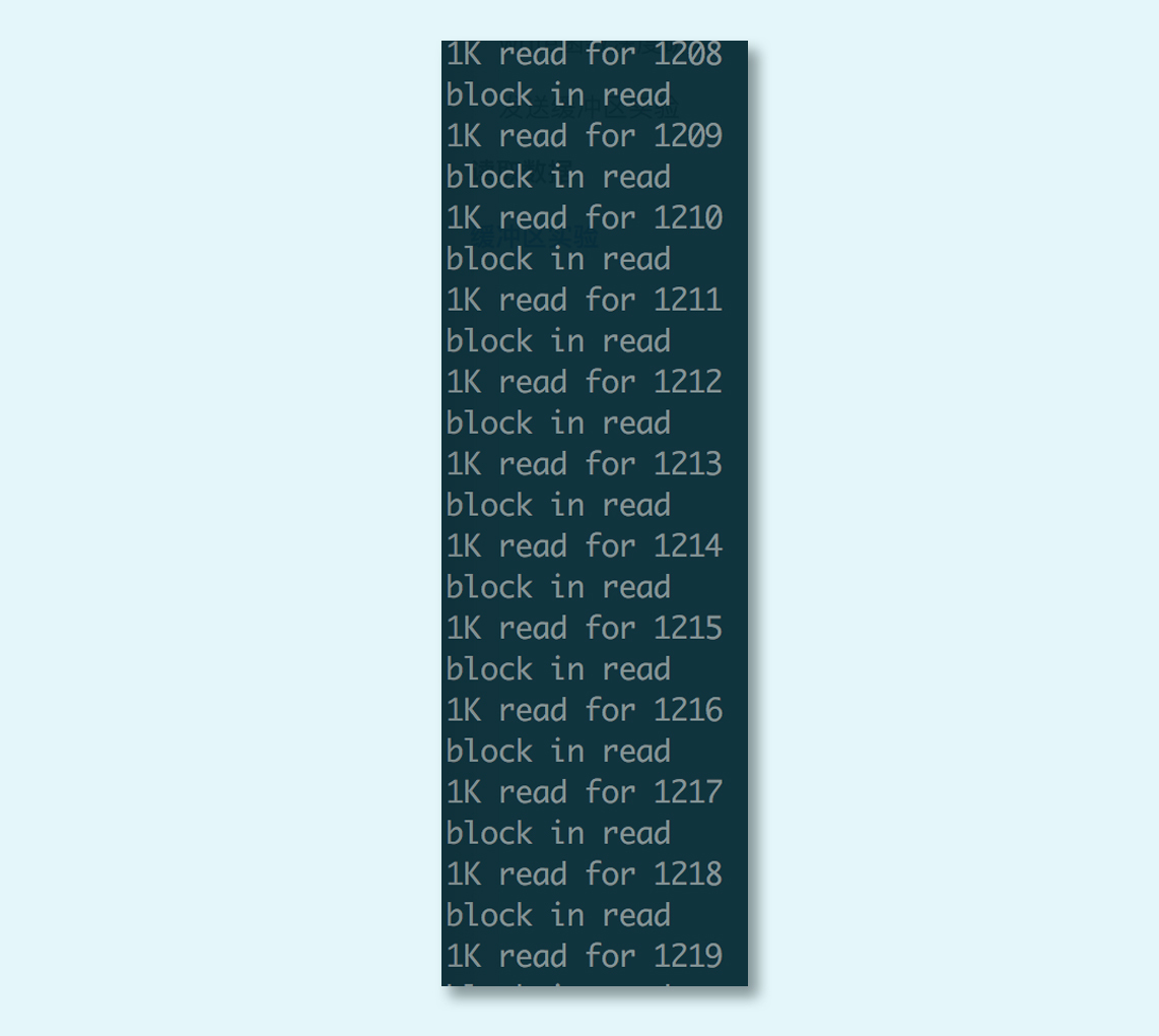 - 8-15行实际每次读取1K数据,之后休眠1秒,用来模拟服务器端处理时延。