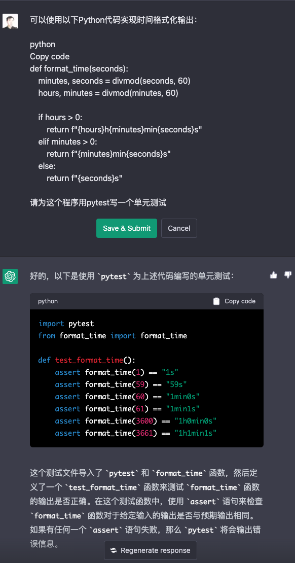 defexplain_code(function_to_test, unit_test_package="pytest"): prompt = f""""# How to write great unit tests with {unit_test_package} In this advanced tutorial for experts, we'll use Python 3.10 and `{unit_test_package}` to write a suite of unit tests to verify the behavior of the following function. ```python {function_to_test} Before writing any unit tests, let's review what each element of the function is doing exactly and what the author's intentions may have been. - First,""" response = gpt35(prompt) return response, prompt