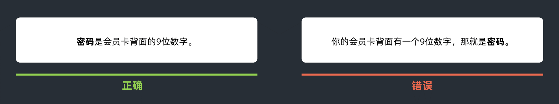 人在阅读屏幕上的信息的时候是跳读,去寻找他们认为与他们相关的关键信息。所以我们要将最重要的关键词放在前面,让用户一眼就抓住这句话的重点。