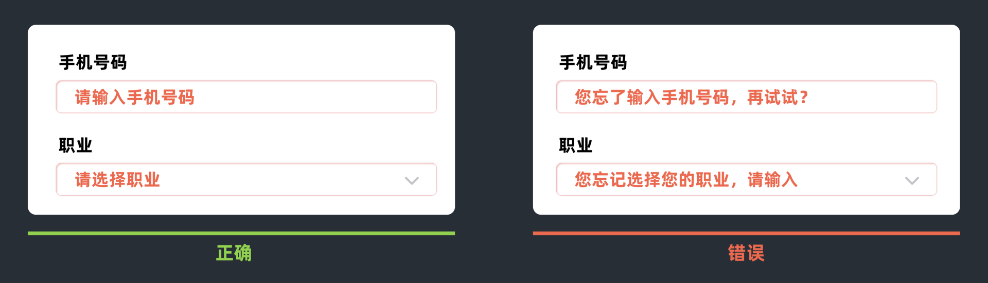 在下图中左半部分是正确的做法,右半部分则是增加用户认知负荷的错误示例。
