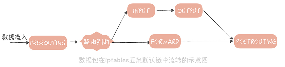 第一种,使用iptables的方式来实现流量透明的转发,而Istio就默认了使用iptables来实现数据包的转发。为了能更清晰地说明流量转发的原理,我们先简单地回顾一下什么是iptables。