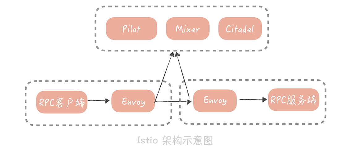 目前,业界提及最多的Service Mesh方案当属Istio, 它的玩法是这样的: