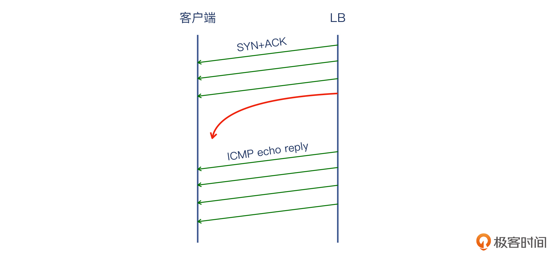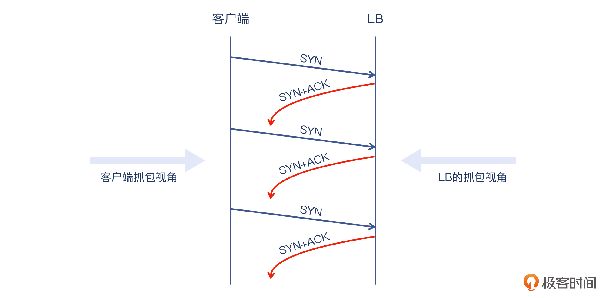 到这里,我们能拼出问题的全貌了:客户端发出了SYN,LB回复了SYN+ACK,但是却没到达客户端。显然,SYN+ACK是在网络上丢失了。