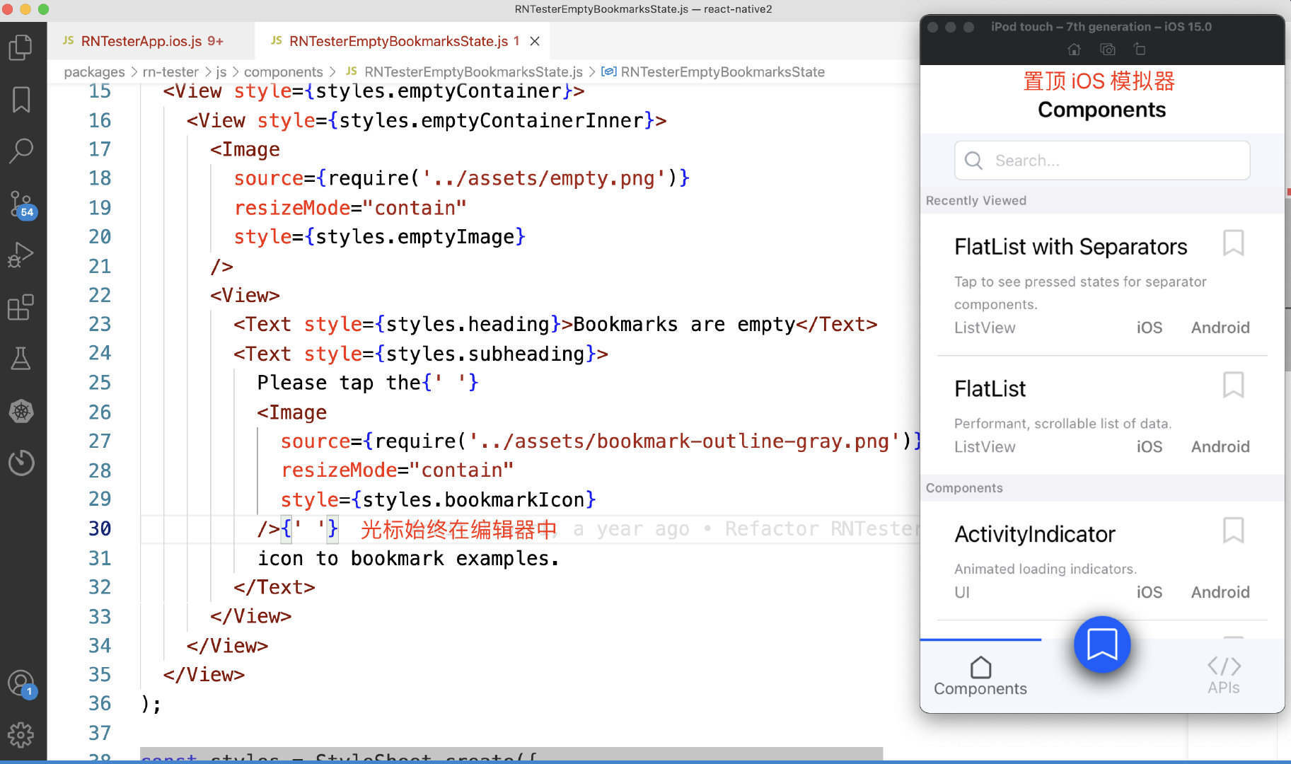 - 同屏预览。将模拟器置顶在编辑器上方,减少你视野来回切换频率;