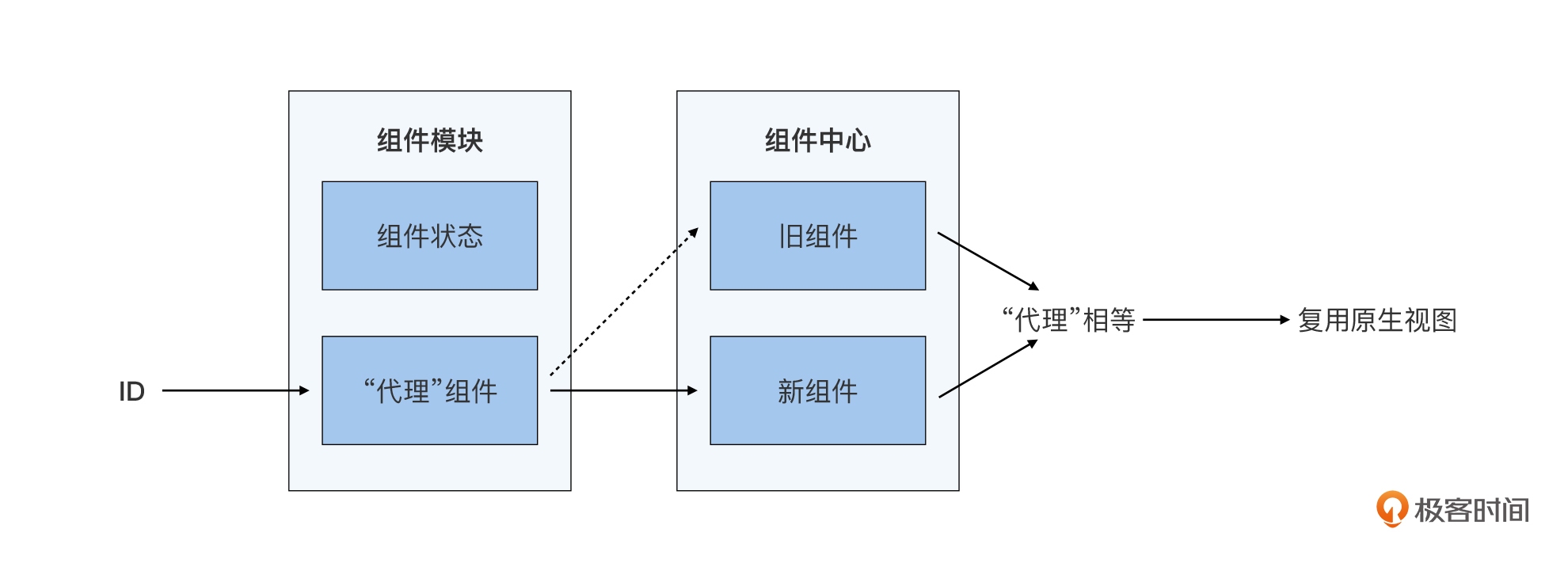 - 在运行时,用“代理”的方式管理新旧组件的切换。
