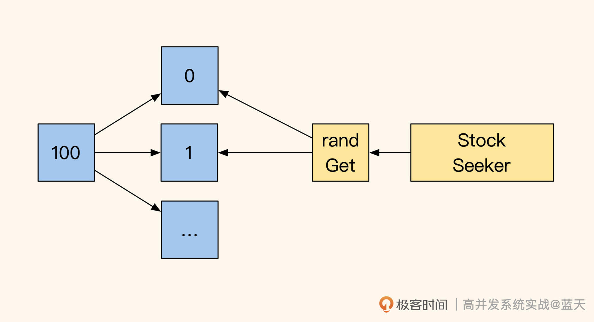 举个例子,当前商品库存有100个,我们可以把它放在10个key中用不同的Redis实例保存,每个key里面保存10个商品库存,当用户下单的时候可以随机找一个key进行扣库存操作。如果没库存,就记录好当前key再随机找剩下的9个key,直到成功扣除1个库存。