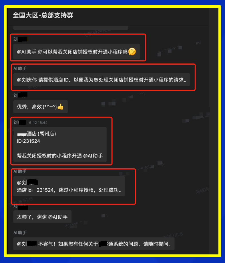 比如说,我的一位朋友就分享了一个不错的落地案例。他所在的企业,通过LLM开发的Agent + RPA + 企业微信,解决了一系列内部重复性的工作。这个例子,就很符合我上面所说的三个探索方向,其实就是在对大模型能力的深度理解基础上,抓住实际场景,把它的能力用起来。