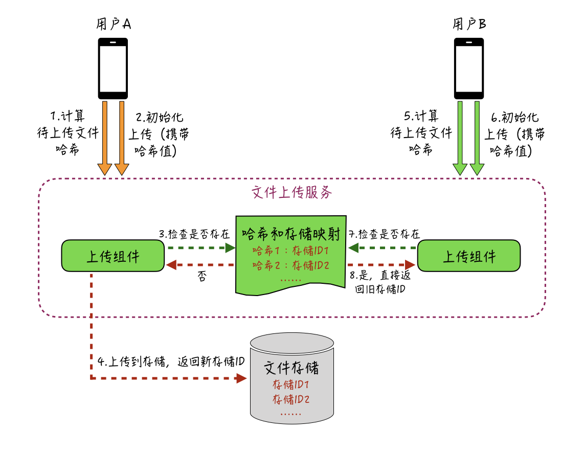 秒传机制的实现其实比较简单,如下图所示: