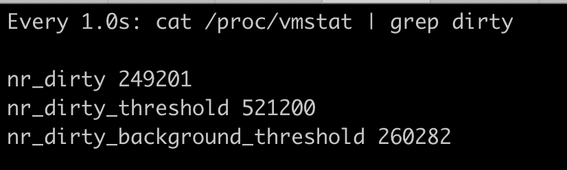 1 | watch -n 1 "cat /proc/vmstat | grep dirty" |