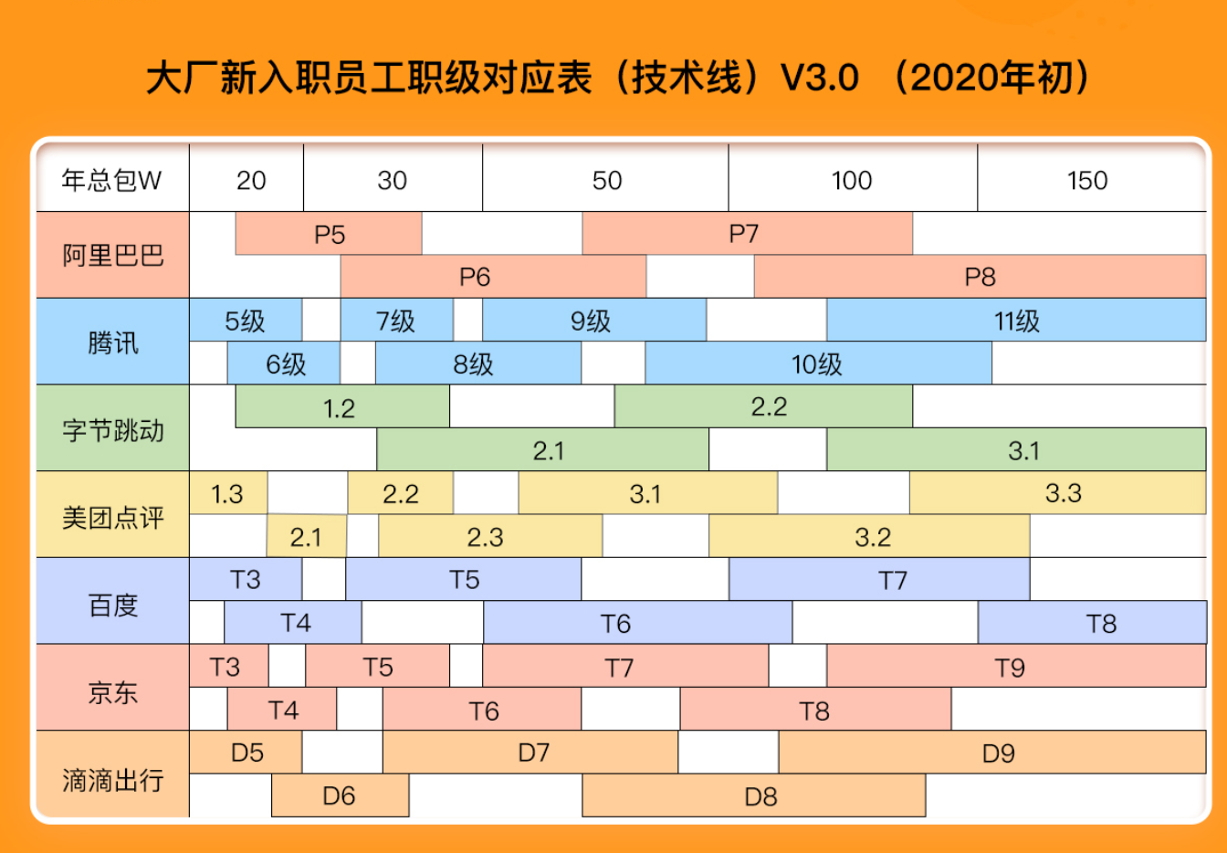 更重要的是,互联网行业发展到现在,已经形成了一套约定俗成、非常严格的公司职级对应体系。在招聘时,各大公司也有一些不可明说的“target company”范围。所以,如果你希望在互联网这个行业长期发展,最可行也最保险的发展路径是加入大公司或者明星公司,不断积攒你的技术财富。