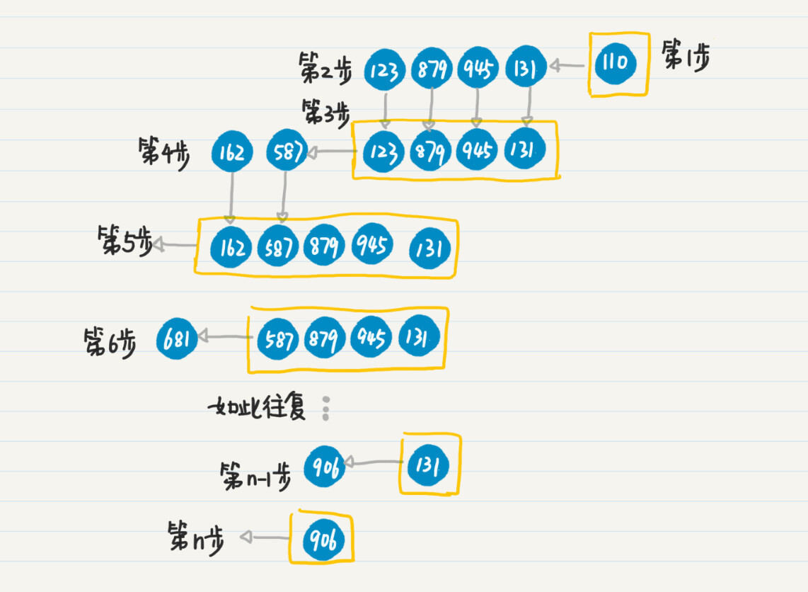 第2步,弹出结点110,搜出下一级结点123、879、945和131。