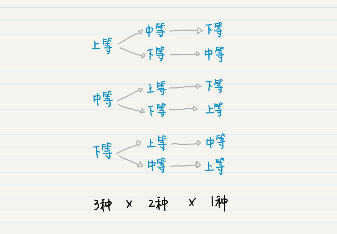 在排列中,我们可以把空集认为是树的根结点,如果把每次选择的元素作为父结点,那么剩下可选择的元素,就构成了这个父结点的子结点。而每多选择一个元素,就会把树的高度加1。因此,我们也可以使用递归和深度优先搜索,列举所有可能的排列。