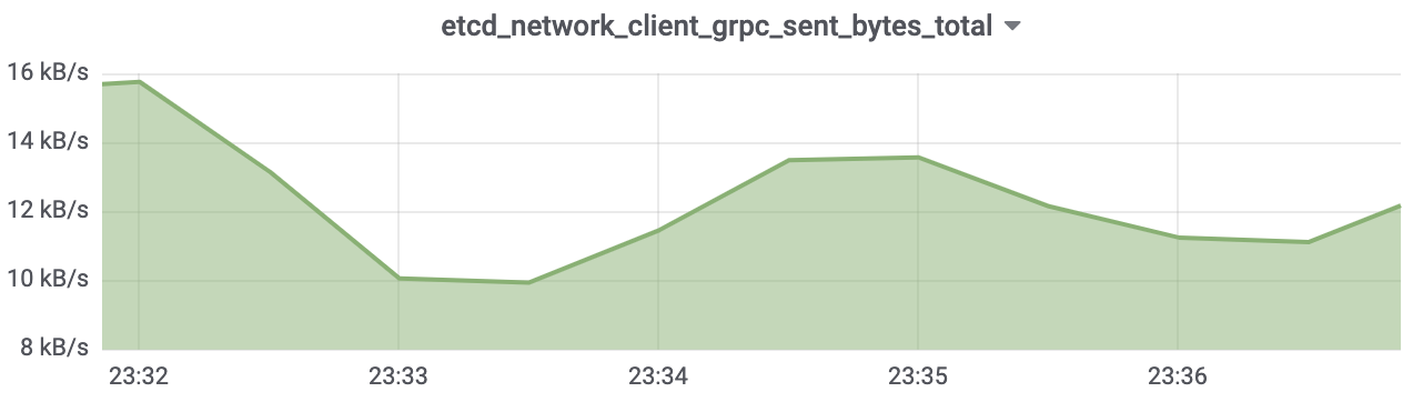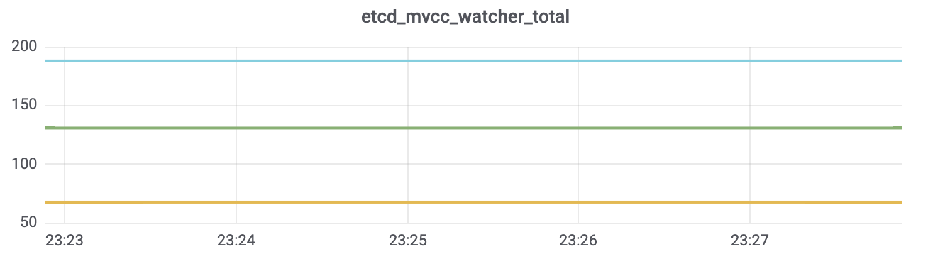 最后,为了方便你查看etcd集群运行状况和提升定位问题的效率,你可以基于采集的metrics配置个grafana可视化面板。下面我给你列出了集群是否有Leader、总的key数、总的watcher数、出流量、WAL持久化延时的可视化面板。