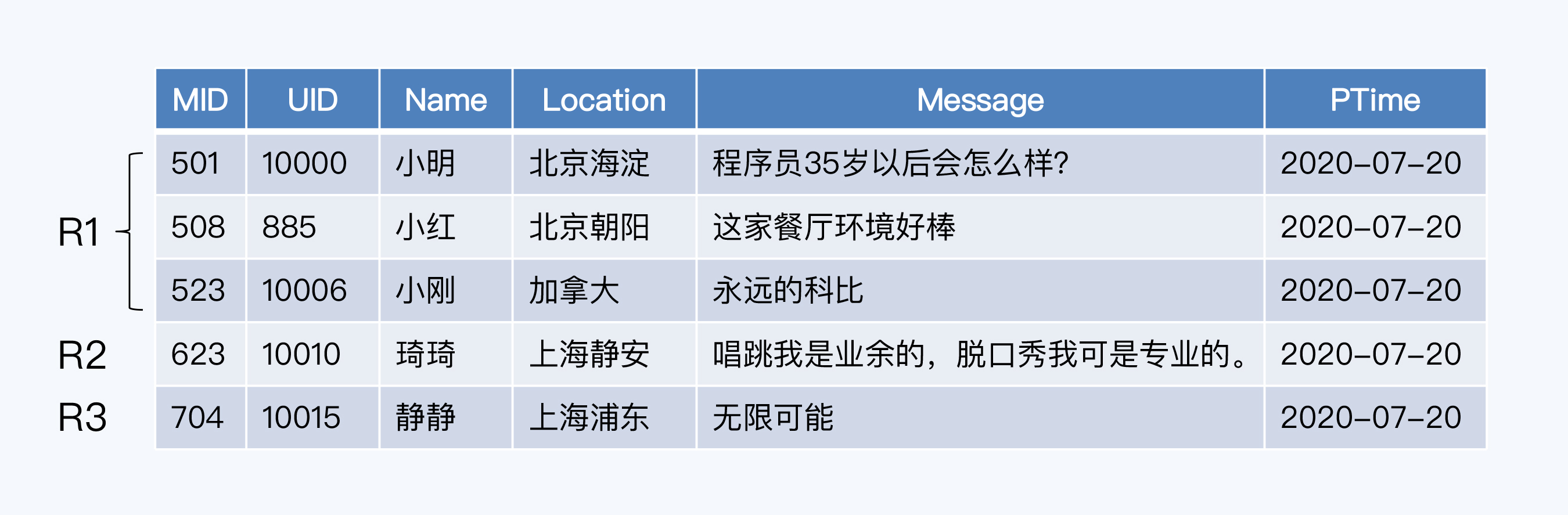 还是回到我们社交网站这个例子,根据消息的数量来自动分片,我们可以得到R1、R2、R3三个分片。