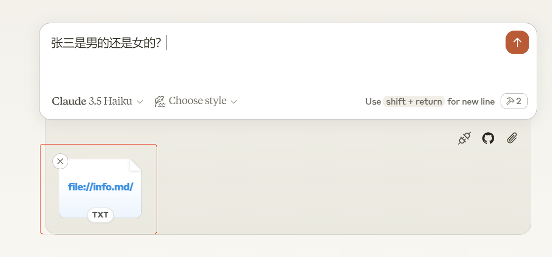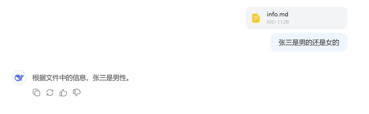 大家如果用过 ChatGPT、Kimi,DeepSeek 的文件对话功能,可能会觉得以上的 Resource 功能非常熟悉。比如,我用 DeepSeek 做演示: