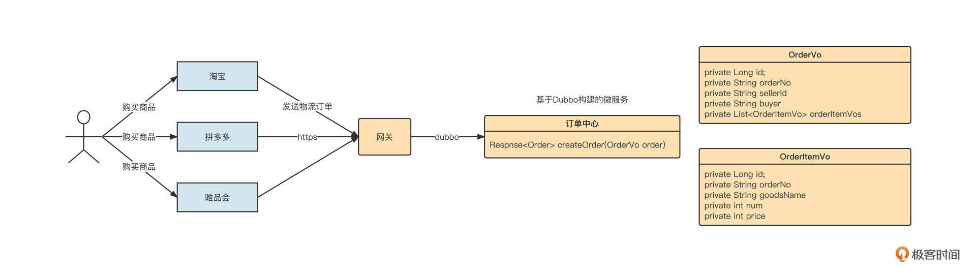 物流公司内部已经基于Dubbo构建了订单中心微服务域,其中创建订单接口的定义如下: