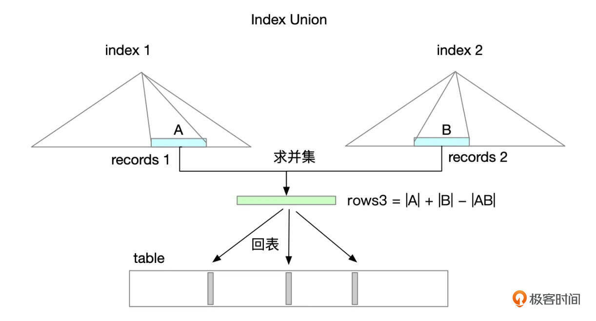 按索引条件读取索引记录 对多个索引的记录合并,去重。 回表查询数据