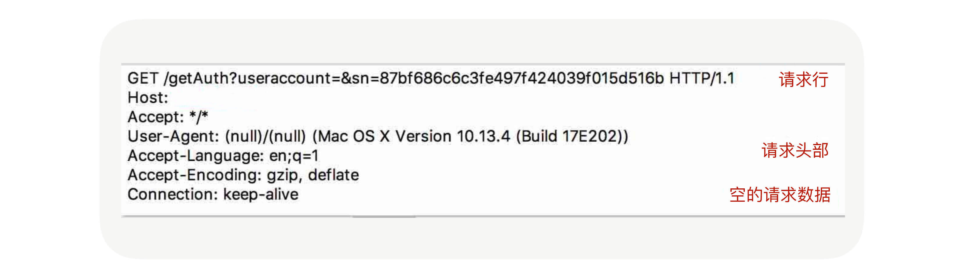 所以**我们今天要讲的RPC协议就是围绕应用层协议展开的。**我们可以先了解下HTTP协议,我们先看看它的协议格式是什么样子的。回想一下我们在浏览器里面输入一个URL会发生什么?抛开DNS解析暂且不谈,浏览器收到命令后会封装一个请求,并把请求发送到DNS解析出来的IP上,通过抓包工具我们可以抓到请求的数据包,如下图所示: