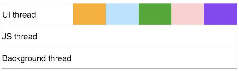 和任何其他应用一样,React Native 应用也需要处理并行任务,比如,在用户滚动页面的时候,不仅要处理用户的滚动手势,并需要将页面绘制到新位置上,与此同时,还可能需要发起新的请求和做一些局部的渲染。只有单个线程时,处理任务就需要排队,前一个没完成,后一个就需要等待,这就容易导致交互的卡顿。