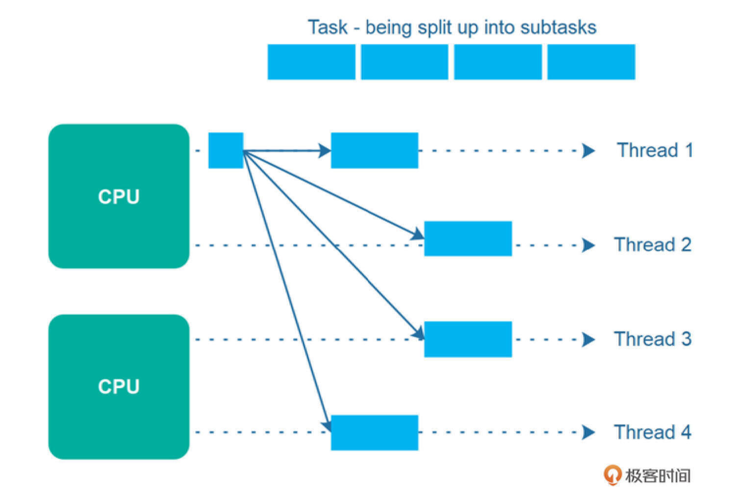 当我们给计算机分配一个任务时,如果这个任务可被分解成若干个可独立执行子任务,那么这时可以在主线程中创建若干个线程,来分别处理这些子任务。从计算机底层视角看,一个计算机可能会有多个 CPU,而每个CPU又是可以开多个线程的,因此计算机是可以同时处理这些可独立执行的子任务的,这就是并行的原理。
