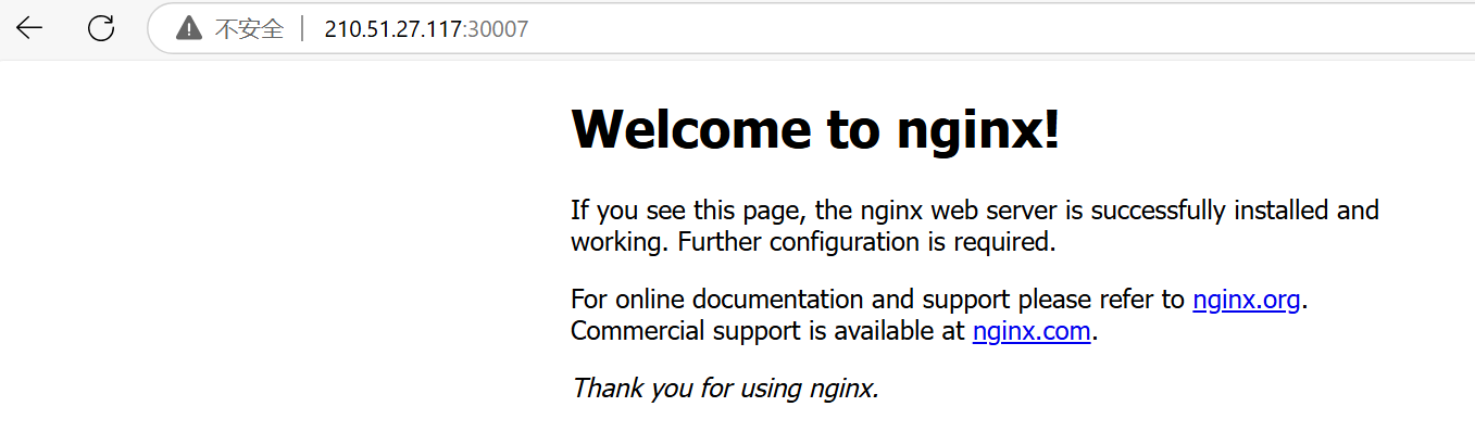 这时在浏览器中使用<服务器公网地址>:30007 进行访问,就可以看到效果了。