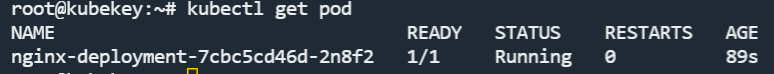 可以看到有一个 pod 处于 Running 状态。这就表示 Nginx 容器被成功创建了。