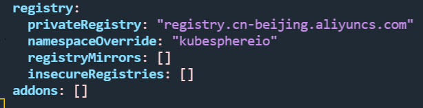 配置文件的其他选项都不需要修改。但是我建议你把最后的镜像下载地址改为阿里云的服务器地址,registry.cn-beijing.aliyuncs.com,否则下载速度会比较慢。