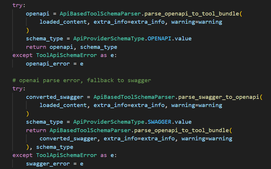 parser_api_schema 是通过调用 auto_parse_to_tool_bundle 方法进行文档解析。该方法的核心代码如下所示: