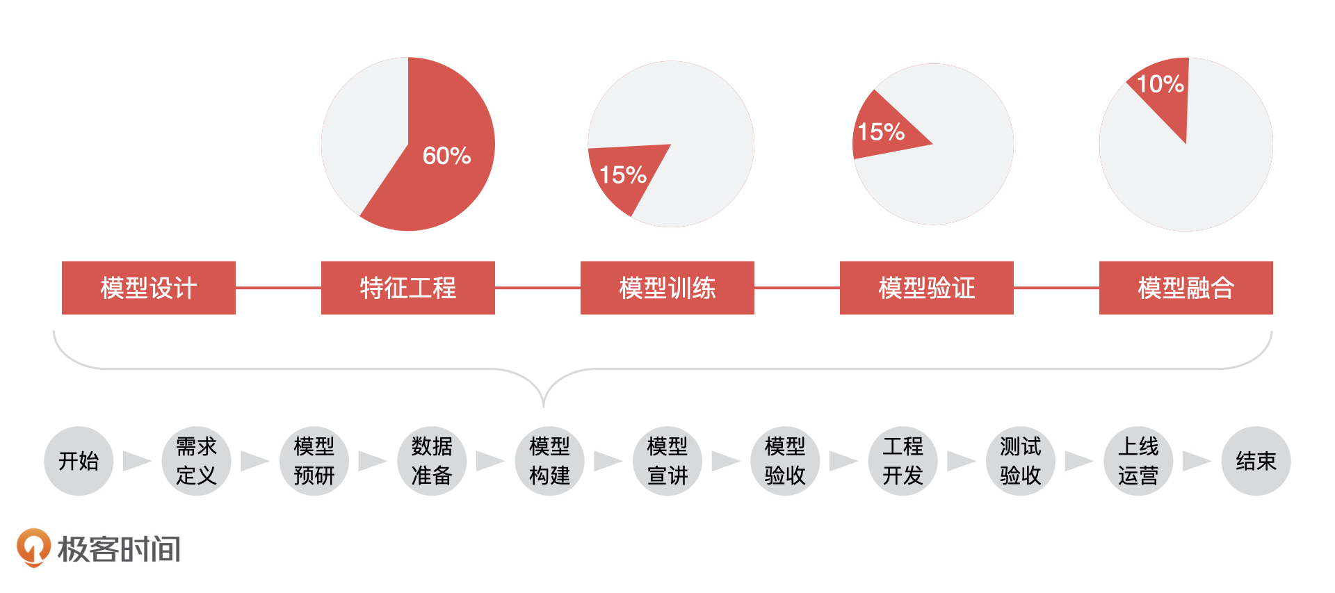 上节课,我们讲了一个模型构建的前 2 个环节,模型设计和特征工程。今天,我们继续来讲模型构建的其他 3 个环节,说说模型训练、模型验证和模型融合中,算法工程师的具体工作内容,以及AI 产品经理需要掌握的重点。