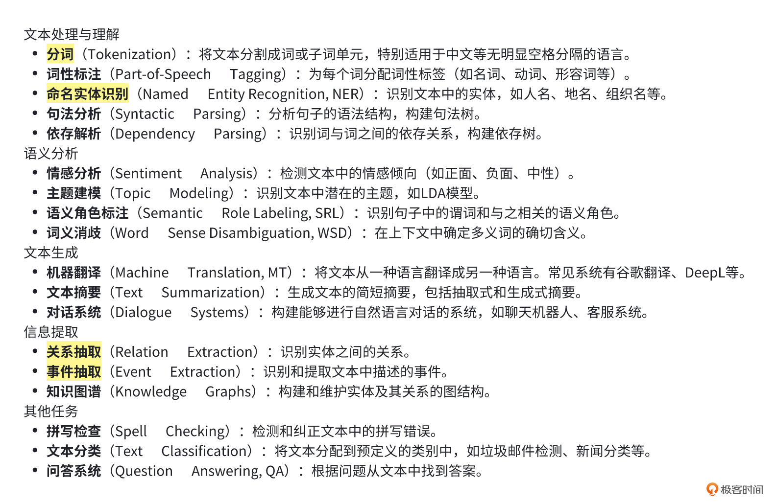 这样说可能还是太抽象,我们先看一看大模型都具备哪些基础 nlp 能力,再用一个例子来说明它是怎么进化的。