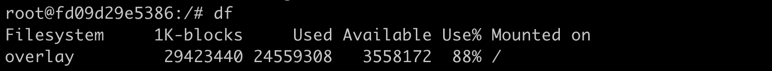 我们在容器里,运行 df 命令,你可以看到在容器中根目录(/)的文件系统类型是”overlay”,它不是我们在普通Linux节点上看到的Ext4或者XFS之类常见的文件系统。