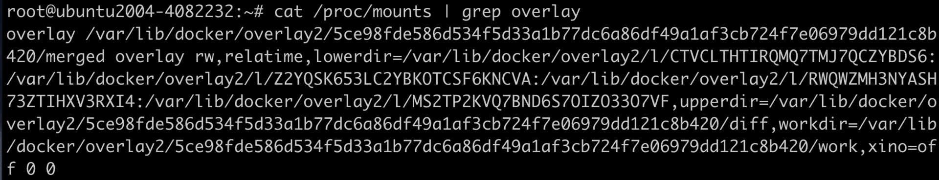 其实也不难,从系统的mounts信息中,我们可以看到Docker是怎么用OverlayFS来挂载镜像文件的。容器镜像文件可以分成多个层(layer),每层可以对应OverlayFS里lowerdir的一个目录,lowerdir支持多个目录,也就可以支持多层的镜像文件。