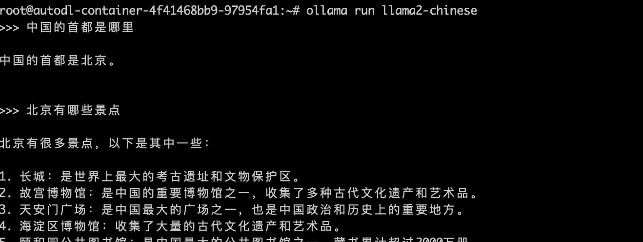 接着,你可以使用ollama run命令进入对话模式,从命令行运行效果看,我们已经可以将其看做命令行版本的 “GPT大模型”了。