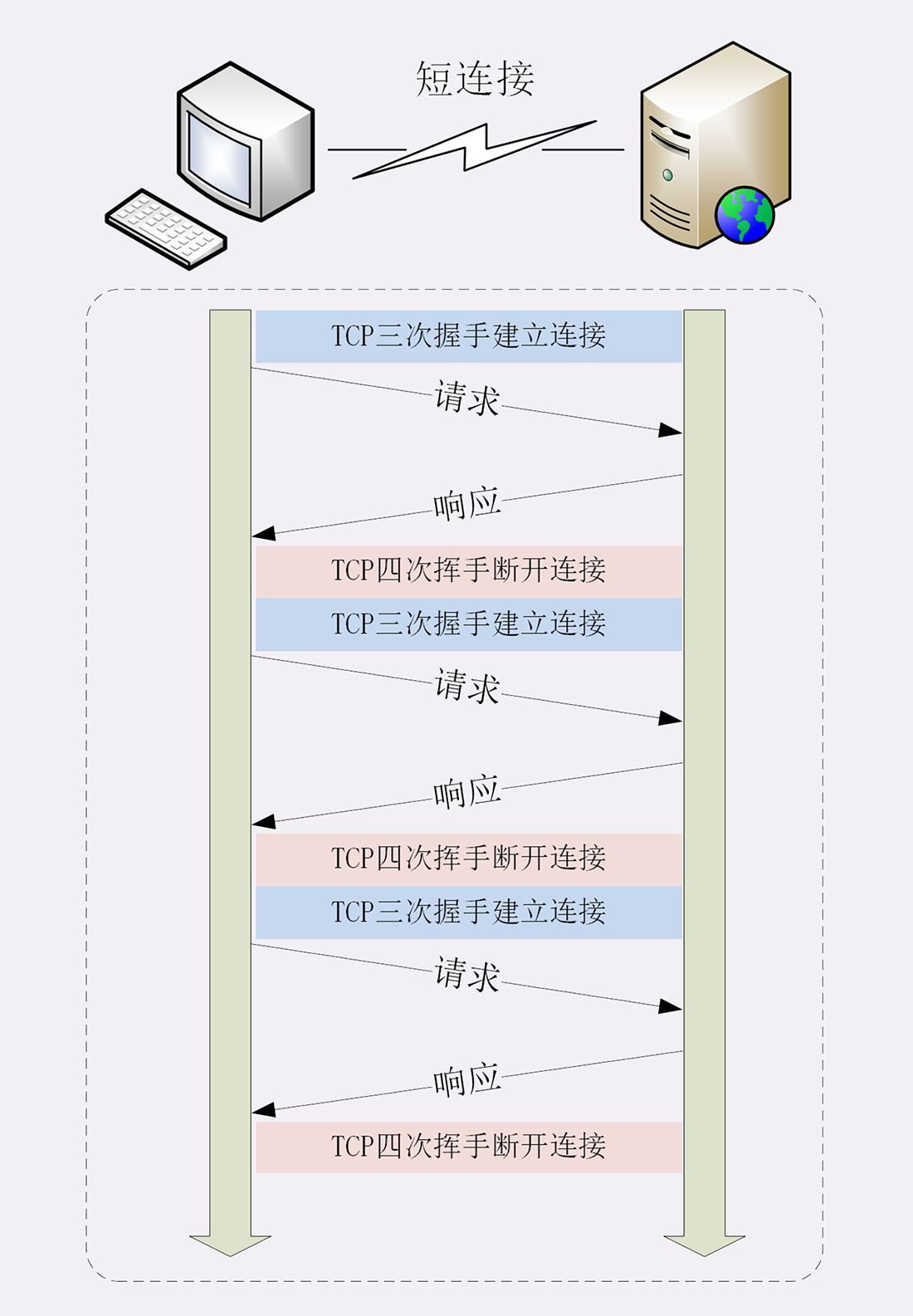 这里我画了一个短连接与长连接的对比示意图。