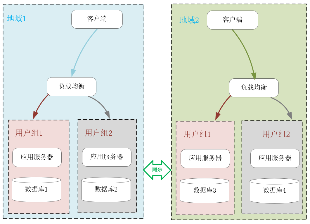 下图中,我使用了2种Z轴扩展系统的方式。首先是基于客户端的地理位置,选择不同的IDC就近提供服务。其次是将不同的用户分组,比如免费用户组与付费用户组,这样在业务上分离用户群体后,还可以有针对性地提供不同水准的服务。