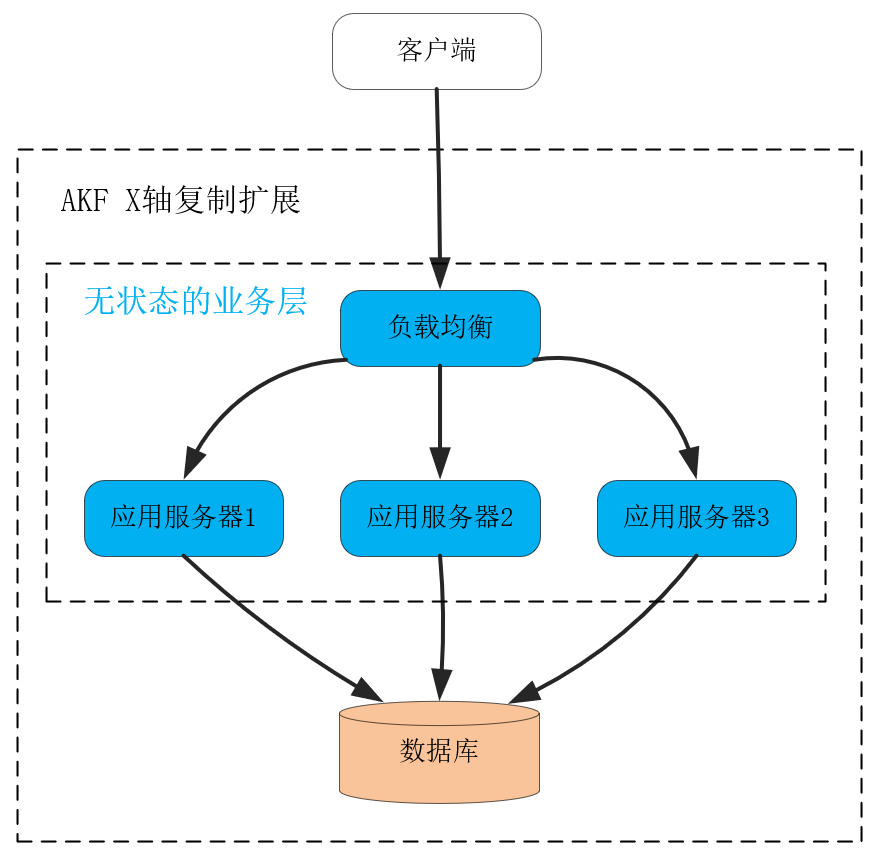 X轴扩展系统时实施成本最低,只需要将程序复制到不同的服务器上运行,再用下游的负载均衡分配流量即可。X轴只能应用在无状态进程上,故无法解决数据增长引入的性能瓶颈。