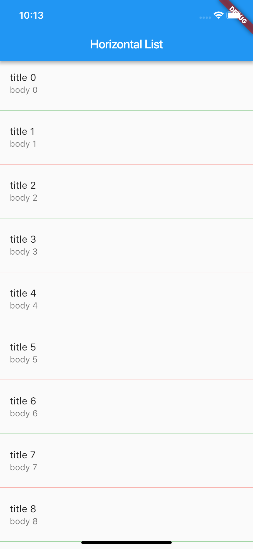 - 一种是,在itemBuilder中,根据index的值动态创建分割线,也就是将分割线视为列表项的一部分;