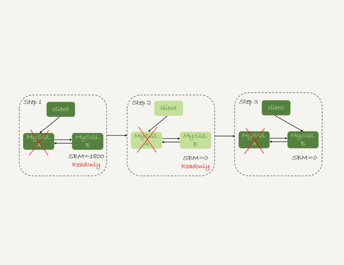 在这个不可用状态中,比较耗费时间的是步骤3,可能需要耗费好几秒的时间。这也是为什么需要在步骤1先做判断,确保seconds_behind_master的值足够小。