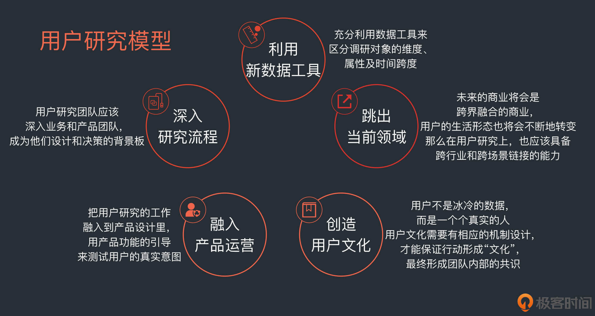 在“成为用户企业”这个模块当中,我几乎没有讲用户研究的方法,我其实是希望从商业和数据的角度,带你去梳理如何用数据工具对接用户在企业运营中的价值。